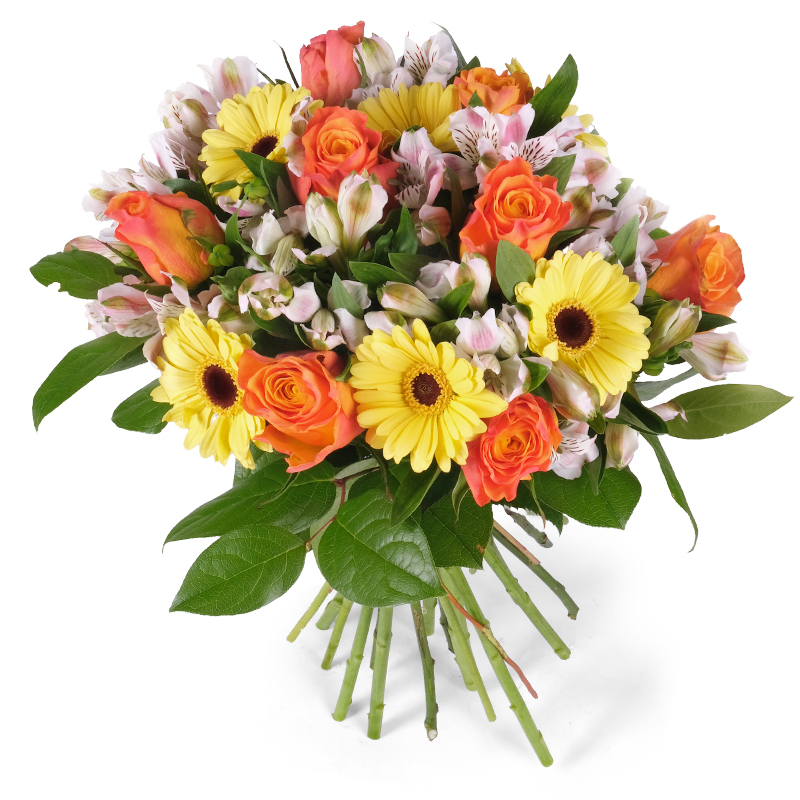 Obfitość róż, gerber i alstromerii sprawia, że bukiet jest idealny do świętowania sukcesów i ważnych momentów. Świeże liście podkreślają znaczenie chwili i dodają naturalności. To prezent, który pokazuje, że celebrujesz razem z obdarowaną osobą.